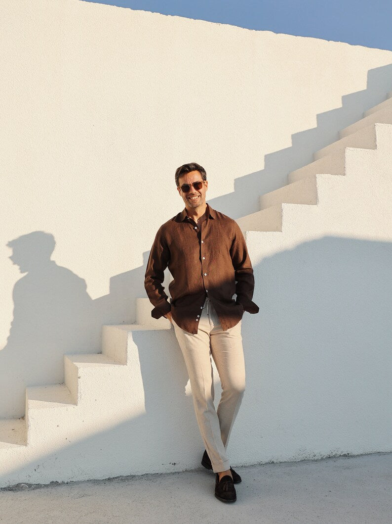 Luxe Linen: Men's Classic Brown Shirt in 100% Linen