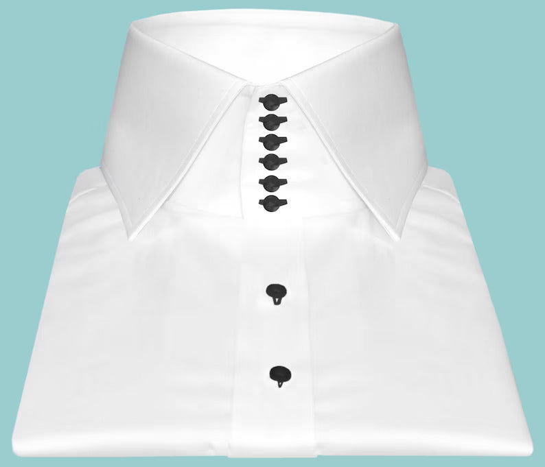 Increase quantity for Ivory Essence: Cotton White High Collar Spread Shirt for Menswear